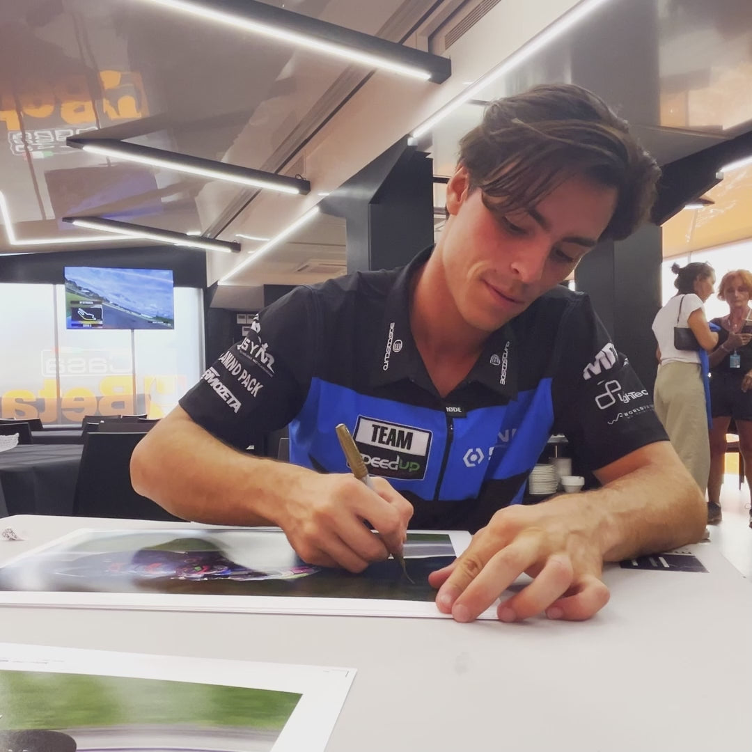 Collectors of all thing Moto2™ will not want to miss the chance to own a signed photo from rising star, Alonso López. The Speed Up Racing rider, known for his competitive riding style, is currently sitting fourth in the World Standings having claimed a victory during the 2024 season so far. López claimed multiple podium finishes during the 2024 season too, including a second place in Austria.