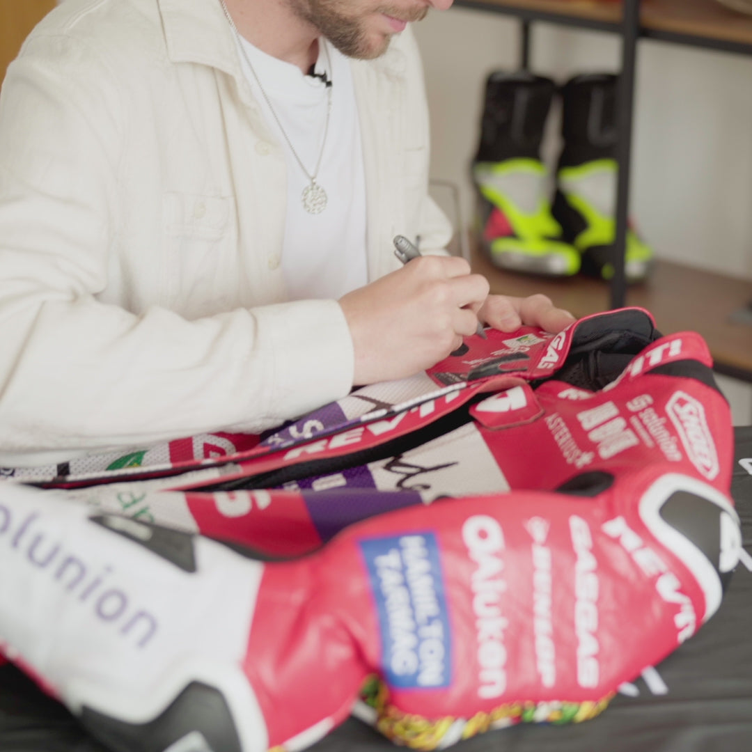 Jake Dixon fans won’t want to miss the chance to own these leathers, worn by the Moto2™ rider during the 2023 British Grand Prix – his home race. The leathers feature the authentic wear and tear from the race – perfect for fans looking to celebrate their favourite rider.